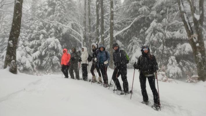A Schia nebbia ma soprattutto neve: i più esperti si sono cimentati in una piccola ciaspolata nei boschi.