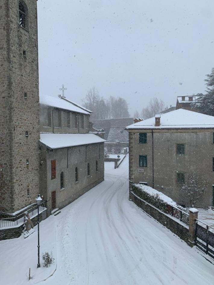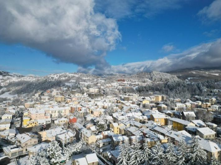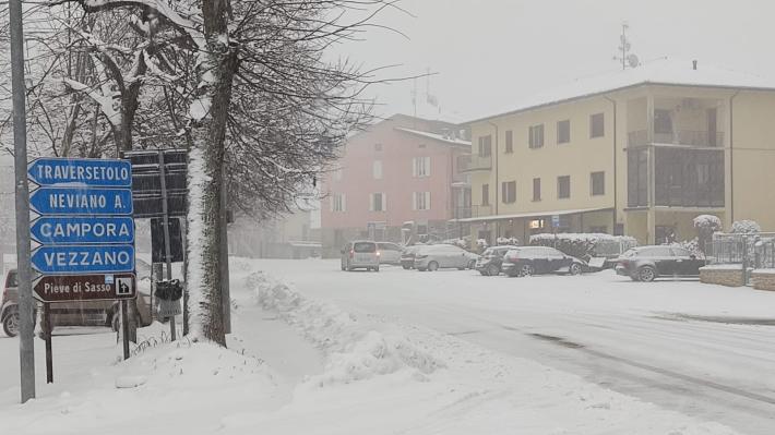 Scatti dall'Appennino imbiancato: continua a nevicare a Berceto, Corniglio, Palanzano e Tizzano. A Tarsogno nevischio e temperature a -2. Schia con la neve per la gioia degli amanti delle escursioni con le ciaspole.