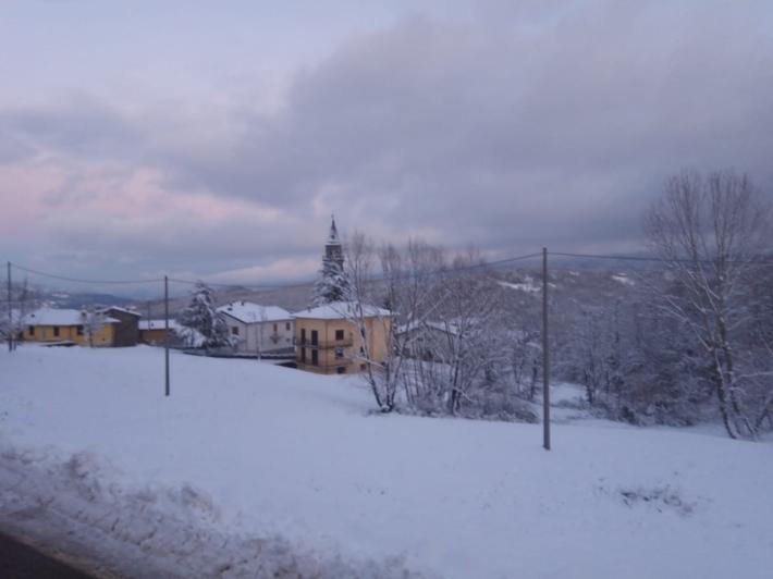 Nevicata in alta Val Parma (zona Cozzano, fra Langhirano e Calestano) che ha imbiancato le colline sopra Langhirano. Dalle prime ore della mattina, i fiocchi sono caduti su prati e strade. Paesaggi mozzafiato, e lavoro per i mezzi spartineve incaricati di pulire le strade comunali e le Provinciali.