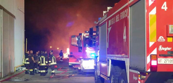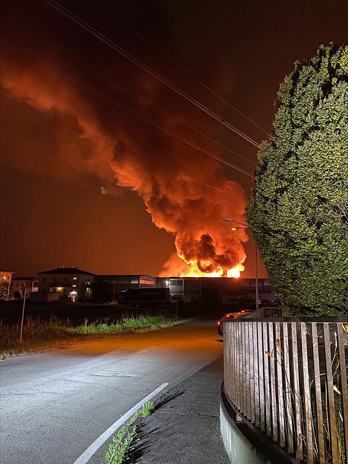 Sono ancora al lavoro i vigili del fuoco per domare l'incendio che è divampato la notte scorsa intorno alle 23.30 in via Don Milani a Sanguinaro, in un capannone di bancali di legno. Nel giro di poche decine di minuti l'incendio si è propagato su tutta la superficie: è stata fatta interrompere ferrovia Milano-Bologna riaperta alle 4 a causa del forte irraggiamento. La situazione è entrata sotto controllo intorno alle 5.30. Sono andati bruciati circa 10mila bancali in legno e un Tir. Sono intervenute squadre di Parma, Fidenza Langhirano, e dell' Aeroporto, di Piacenza e Fiorenzuola. Le temperature raggiunte durante l'incendio e rilevate con la termocamera dei Vigili del fuoco hanno superato i 700 gradi.