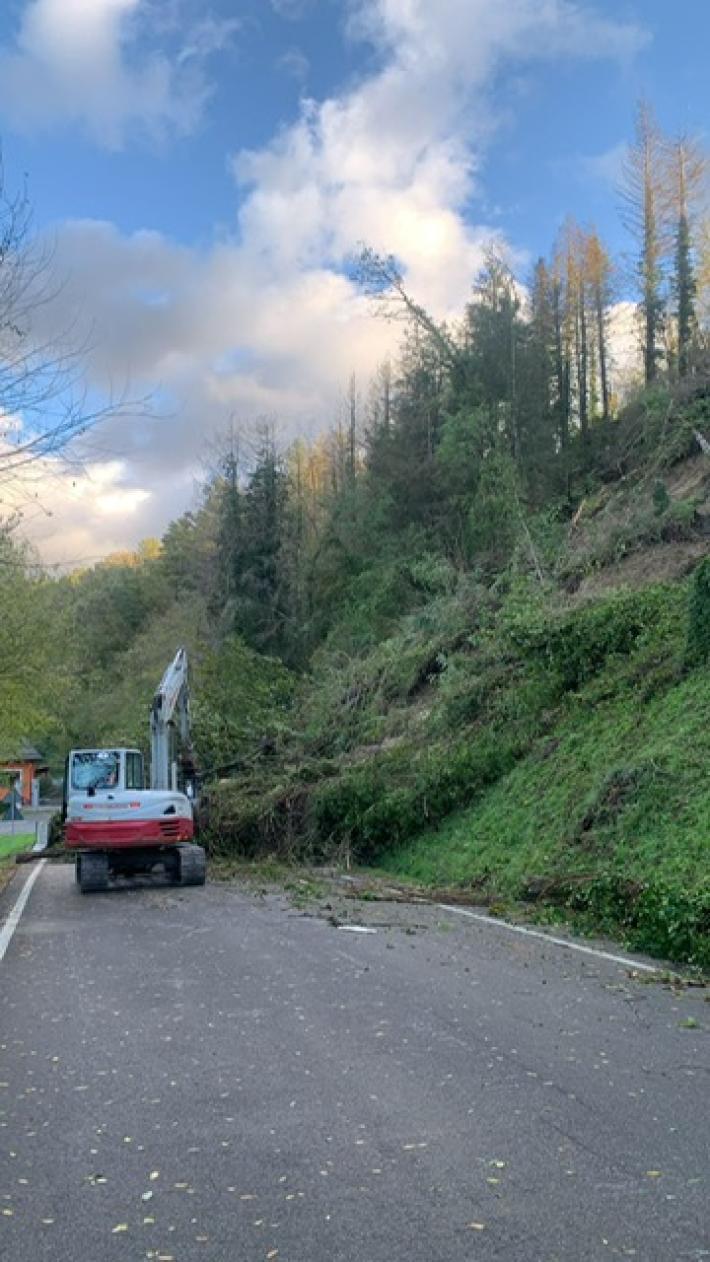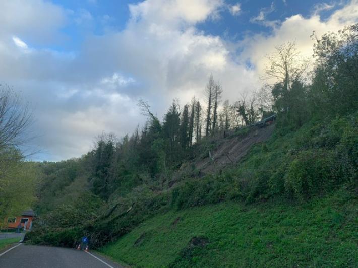 Compiano, la montagna si "sbriciola", terra e alberi sulla strada, la provinciale 66. Imprese e tecnici della provincia sono già al lavoro per rimuovere i tronchi dalla strada e mettere in sicurezza la parte franata.