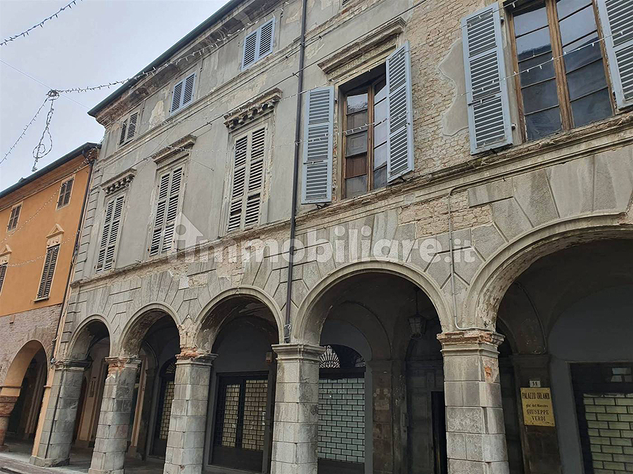 "Nel centro della cittadina di Busseto, a metà strada tra Parma e Piacenza, nonchè al centro delle Terre Verdiane – si legge nello stesso annuncio di vendita che tutti possono leggere al link https://www.immobiliare.it/annunci/112114681/ - si vende importante Palazzo storico luogo di residenza e appartenuto al grande Maestro Giuseppe Verdi. Palazzo Orlandi, agli inizi del XIX secolo fu completamente ristrutturato in stile neoclassico creando la pregevole facciata su via Roma e modificando gli interni, incluse le decorazioni pittoriche di diversi ambienti. Il palazzo, all'epoca considerato il più moderno dell'intera cittadina, fu acquistato, il 6 ottobre 1845, dal Maestro Giuseppe Verdi, e vi si trasferì col soprano Giuseppina Strepponi e compose fra le sue sale alcune delle sue opere più famose. Il grande palazzo, a pianta rettangolare, che si sviluppa ad angolo fra la centrale via Roma e la stretta via Pasini, ha una superficie complessiva di 2500 mq distribuita su tre piani. Al piano terra troviamo alcune attività commerciali, oggi vuote, e ai due piani superiori, le residenze. La facciata principale si innalza su un elegante porticato di nove arcate a tutte sesto, con rivestimento in finto bugnato sul piano terra; sopra si aprono altrettante finestre inquadrate da cornici, superiormente si eleva l'ultimo livello, con più piccole aperture anch'esse incorniciate. All'interno, raggiungibile attraverso un lungo androne coperto da una volta decorata, il cortile centrale è caratterizzato dall'elegante porticato, sovrastato da loggiato, che si innalza sul lato dell'ingresso. Il piano nobile è stato decorato con affreschi a grottesche, che, realizzati da Giuseppe Cavalli all'epoca della ricostruzione del palazzo, ricoprono le pareti e la volta a padiglione del soffitto. L'immobile, che può raccontare una parte di estrema rilevanza della musica mondiale, si merita di trovare un nuovo proprietario, che se ne prenda cura con un importante intervento di risanamento e recupero, per riportarlo all'antico splendore. Viste le sue caratteristiche infatti, è adatto a vari utilizzi, quali ad esempio una magnifica residenza privata, per ricettività di amanti della musica oppure anche una scuola di musica e canto, e ancora molti altri ancora".