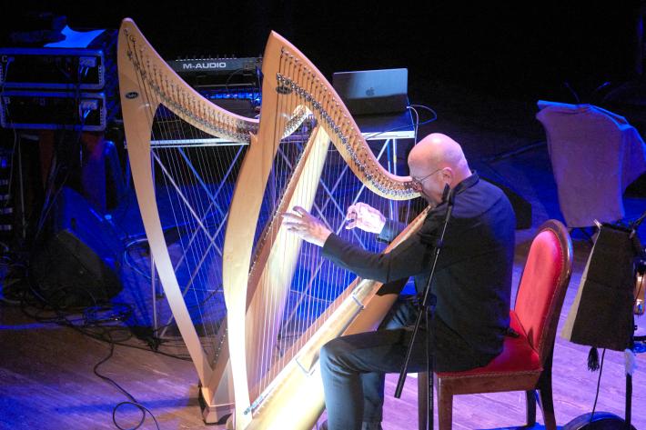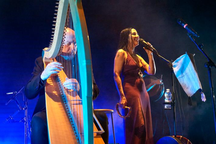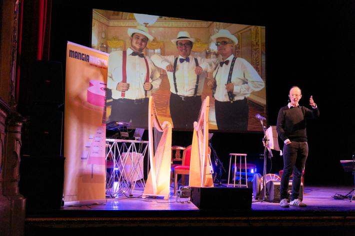 Teatro Magnani di Fidenza ancora una volta gremito per Mangiamusica. Sul palco, accolti con meritatissimi applausi, gli ammalianti spettacoli "Graal" (anteprima nazionale) con il maestro Vincenzo Zitello, lo straordinario violinista Fulvio Renzi e l'attore Davide Ferrari ospite e a sorpresa, e "Queendoms" con Agadez (Giada Colagrande), insieme all'immenso Antonio ForcioneGuitar (special guest, chitarrista e compositore di fama internazionale), Lucrezia Testa Iannilli, Massimiliano Cocciolo, Altea Narici, Mariano Navone e lo stesso Zitello.