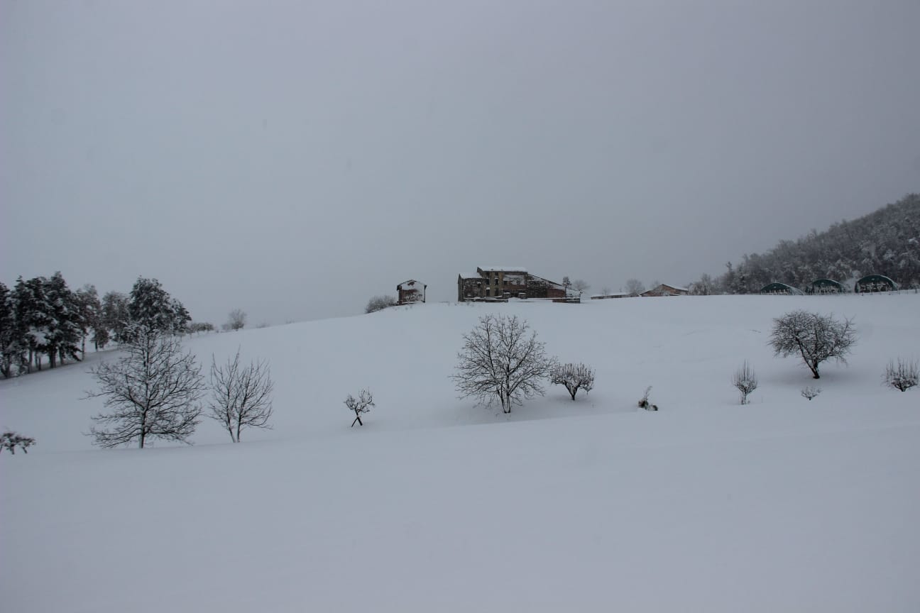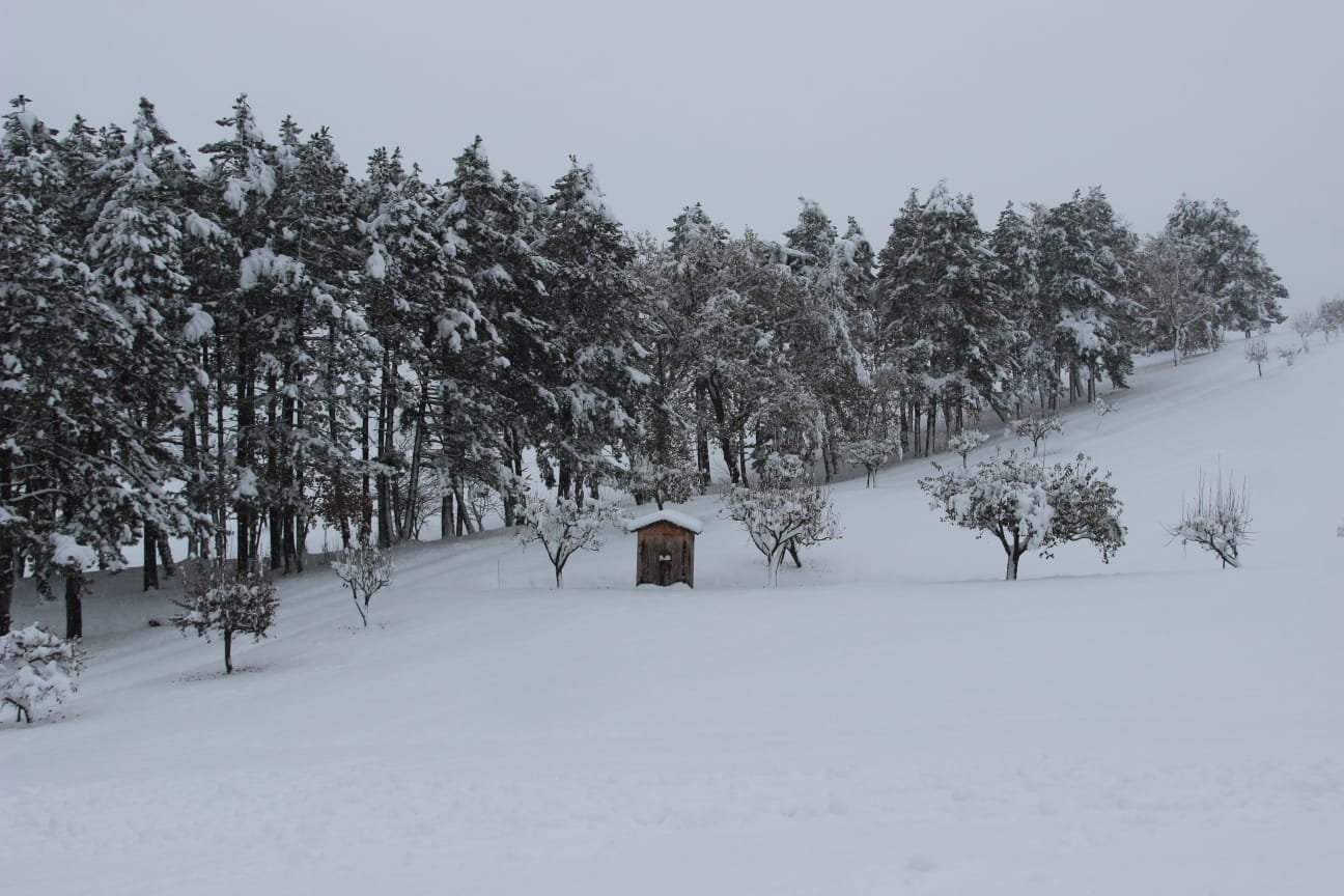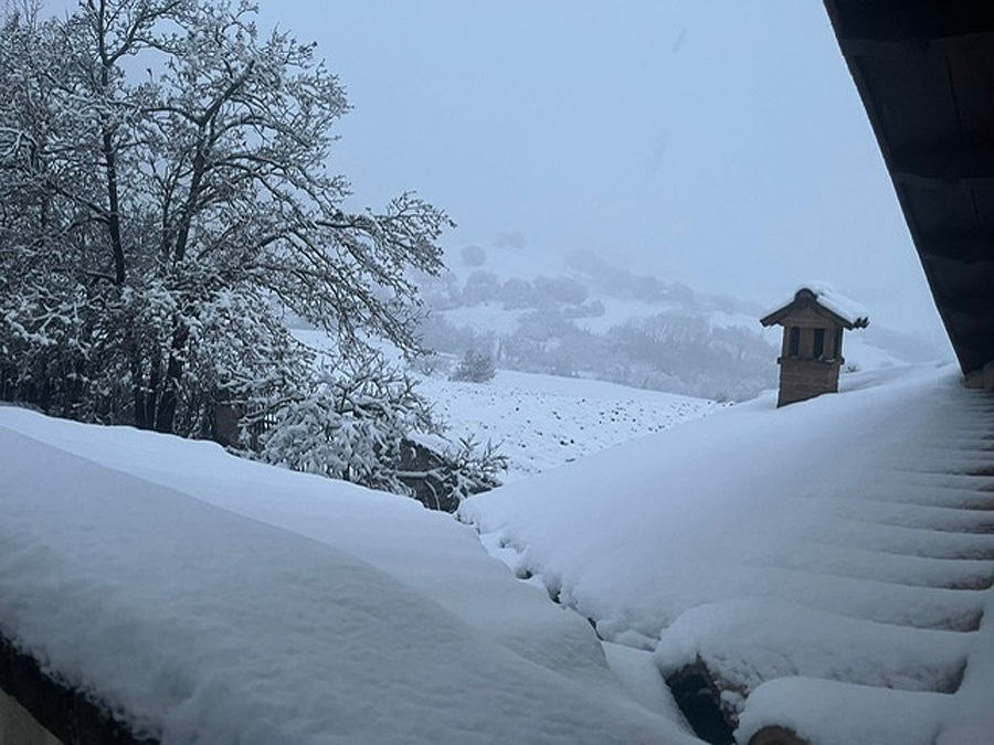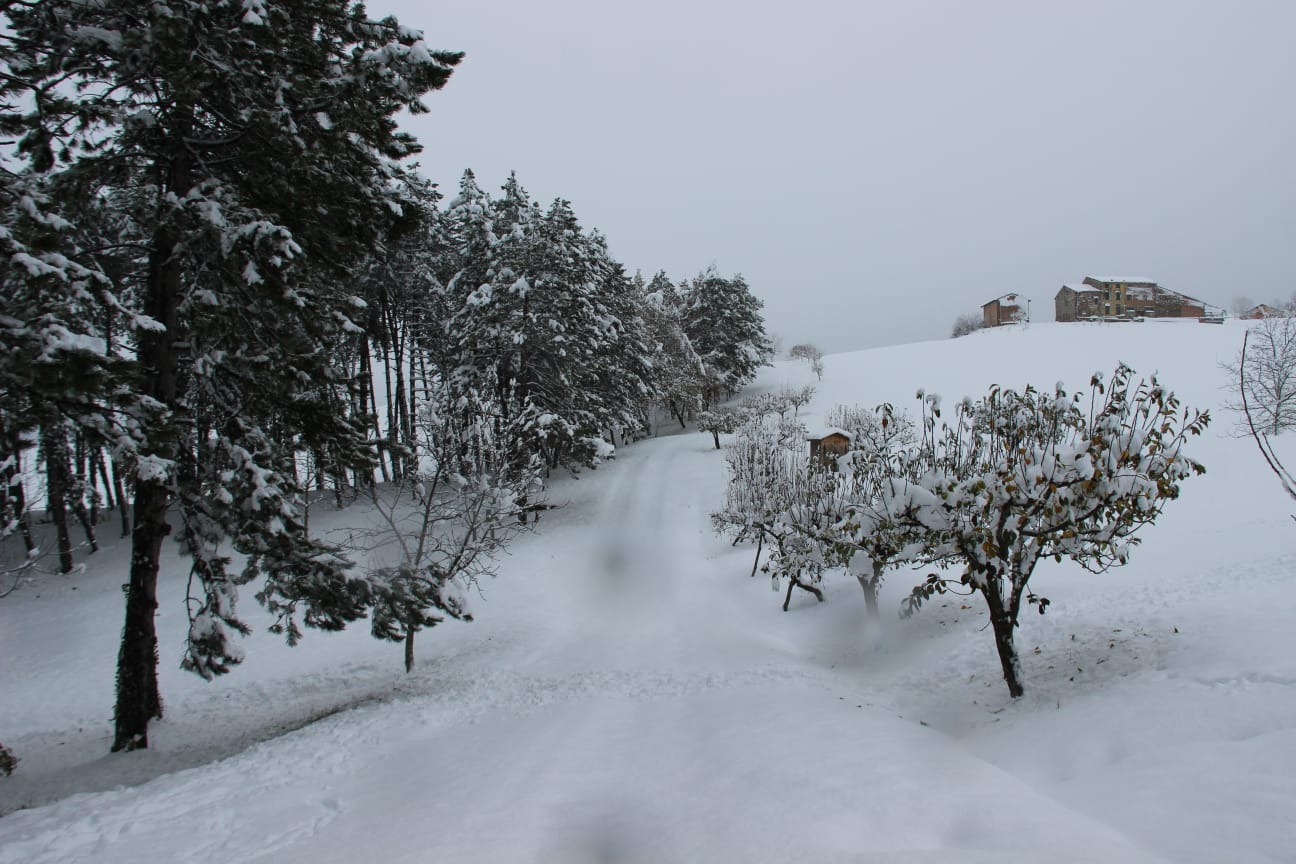 Neve in montagna e sulle prime colline di Parma nel comune di Langhirano. Dopo la matinata e il pomeriggio, all'inizio della sera sono caduti 30 centimetri. Ecco come appare il panorama nel Langhiranese