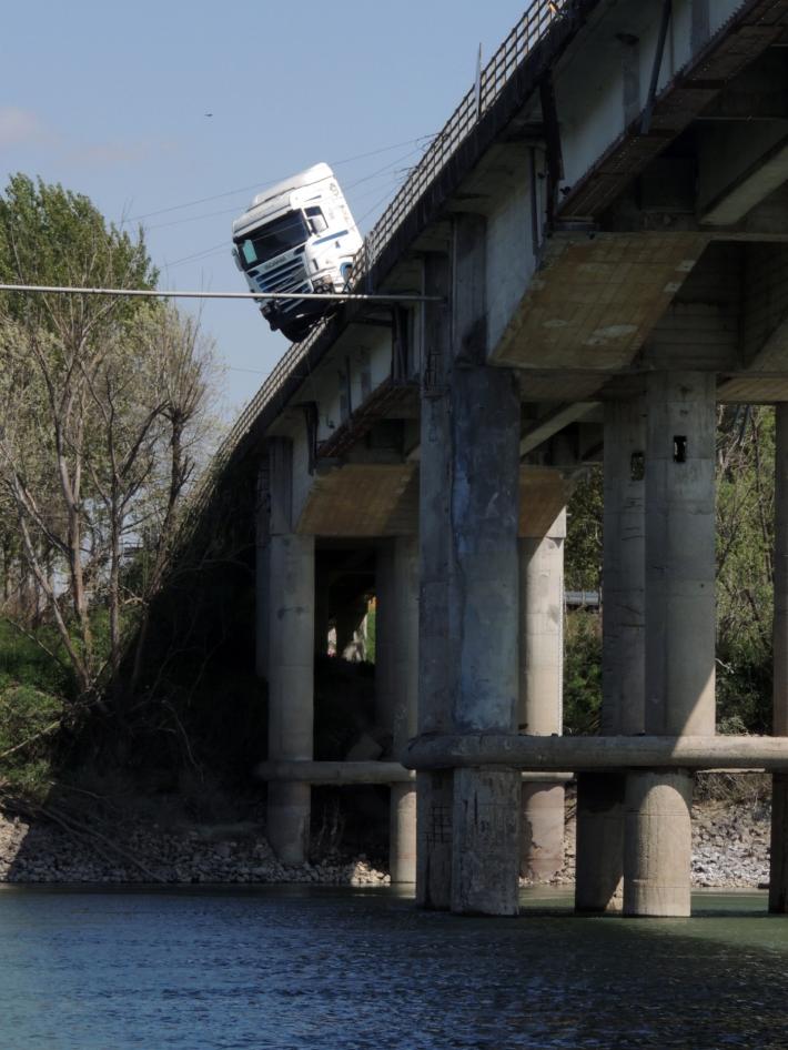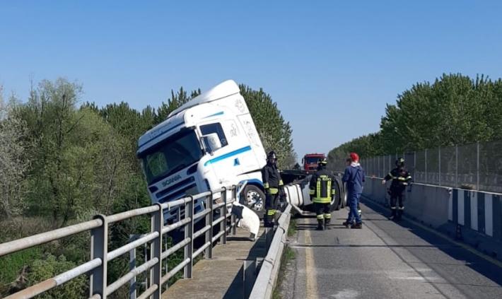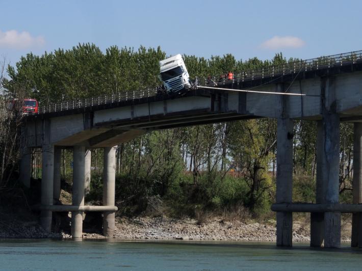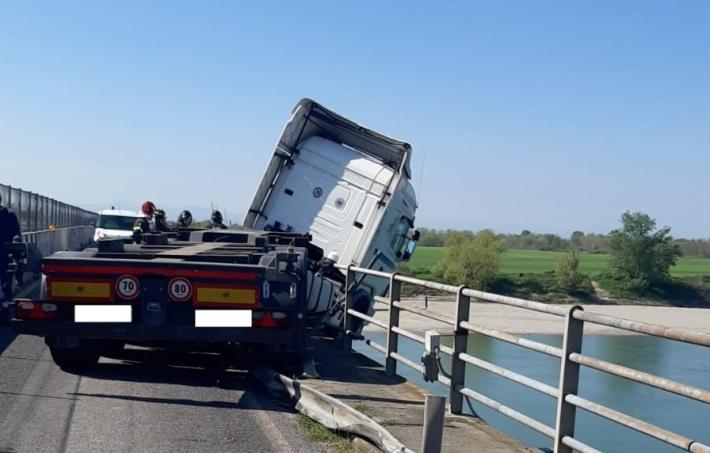 Tragedia sfiorata questa mattina sul ponte Verdi sul fiume Po a Ragazzola, tra le province di Parma e Cremona: un mezzo pesante è uscito di strada abbattendo il guardrail e la barriera protettiva, rischiando di precipitare nelle acque del fiume. Il conducente ha riportato lesioni non gravi. Lo schianto è avvenuto nel punto in cui il manufatto è a senso unico alternato per consentire lo svolgimento dei lavori consolidamento. Al momento, in attesa che siano completate le operazioni di rimozione del mezzo, la viabilità è stata interrotta a lungo.