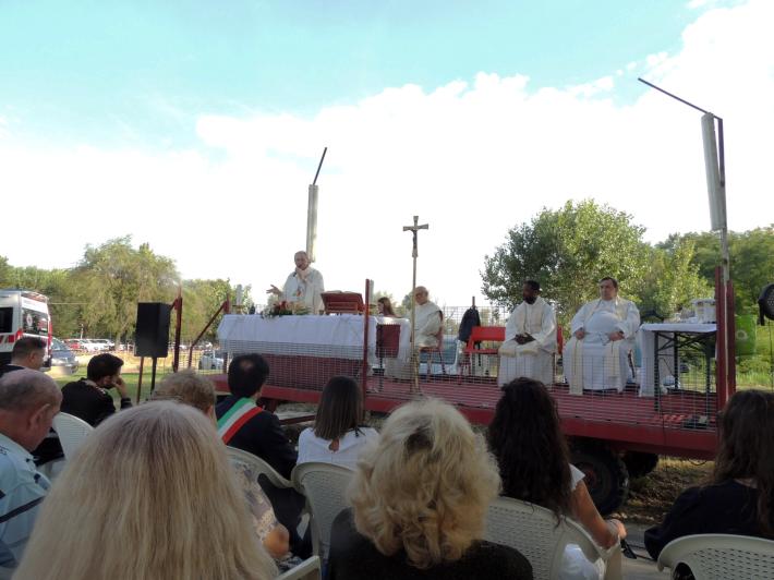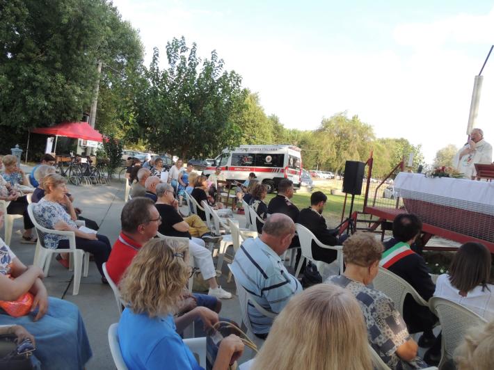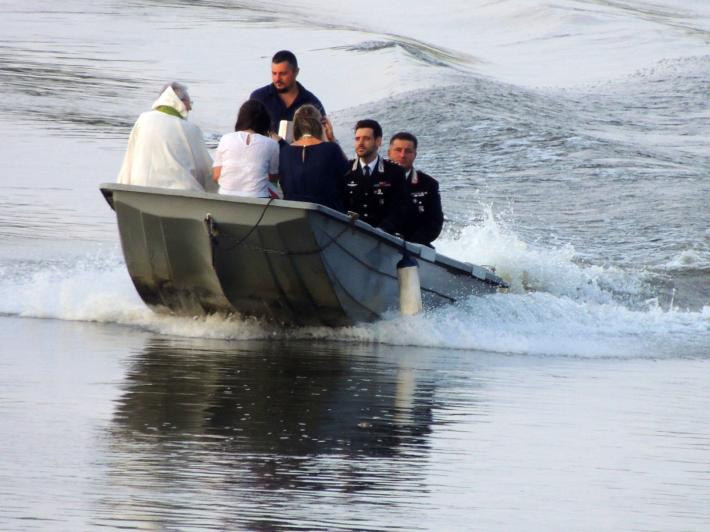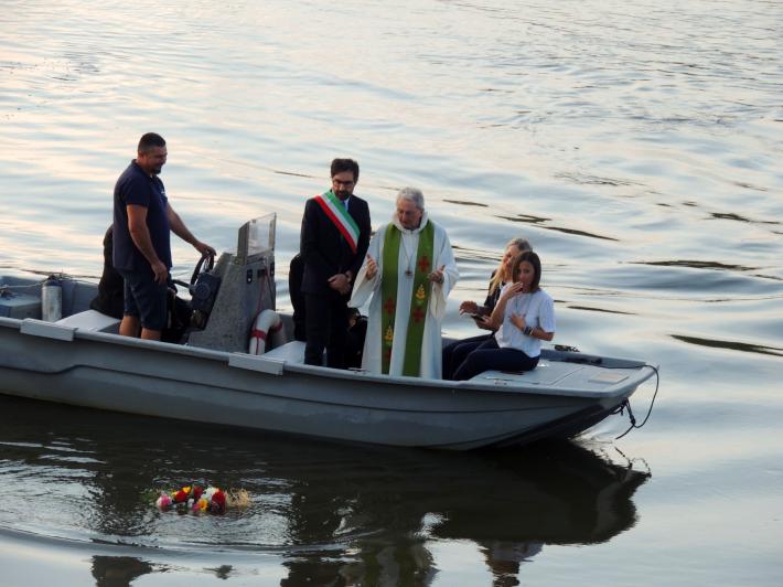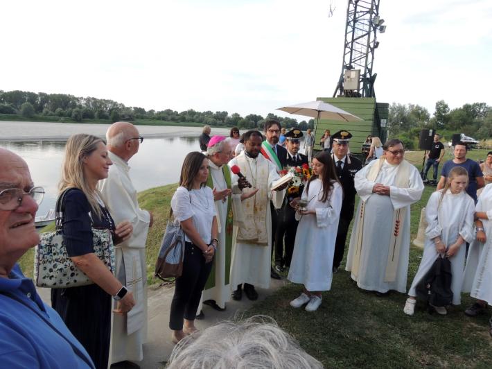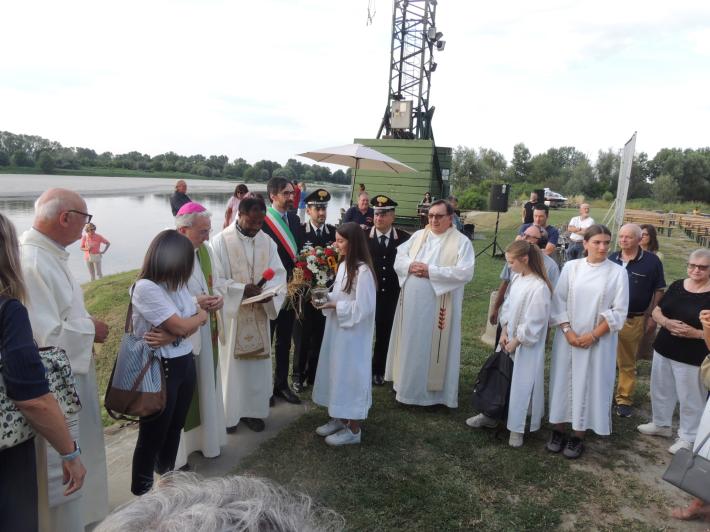Il vescovo di Fidenza monsignor Ovidio Vezzoli ha presieduto la messa al parco Le Scalette, affiancato dai sacerdoti della zona, ed ha poi benedetto, in barca, le acque del Grande fiume, ricordando le vittime del fiume stesso. Per loro è stata rilasciata, dal vescovo insieme al sindaco Alessandro Gattara, una corona di fiori tra le acque del fiume stesso. Un particolare ricordo è stato dedicato a Romanello Balocchi, industriale locale, fondatore e titolare della Plafond Plast, mancato nei mesi scorsi. Un grande uomo del Po, Balocchi, per tanti anni campione di motonautica, tra i protagonisti del celebre Raid Pavia – Venezia ed <anima> della festa sul Po di Stagno. In suo ricordo è stato esposto il motoscafo col quale ha partecipato a tante gare ed è stato presentato un video realizzato da Paolo Gepri.