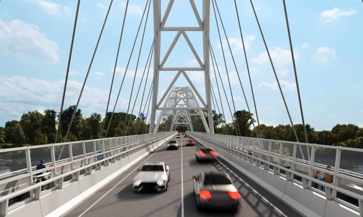 Il nuovo ponte - più alto di circa tre metri rispetto all’attuale - sarà lungo 2 chilometri, dei quali 460 metri nell’alveo del Po, il resto in golena. La parte in alveo sarà composta da 3 campate di 150 metri di lunghezza, ciascuna in acciaio e con forma ad arco, mentre la restante parte, in golena, sarà caratterizzata da un viadotto multicampata in conglomerato cementizio e acciaio. Ci saranno solo due pile in acqua con conseguenti vantaggi per la navigazione e per la gestione idraulica, soprattutto per quanto riguarda l’eventuale deposito contro le pile di detriti, rami e tronchi trasportati dalla corrente del Grande fiume.