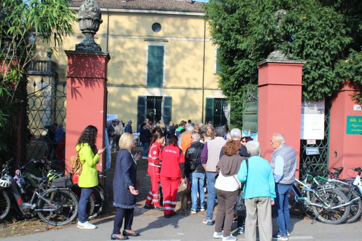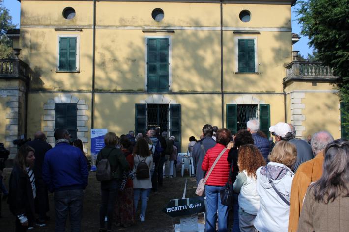La villa, recentemente acquisita dal Ministero della Cultura, da alcuni anni non è aperta al pubblico e versa in condizioni di conservazione non ottimali; il Ministero sta avviando importanti lavori di restauro e adeguamento per preservare e valorizzare questo luogo straordinario. Le visite dell’11 e 12 ottobre sono a cura di Soprintendenza Abap per le province di Parma e Piacenza, Volontari Fai (Delegazione di Piacenza, Gruppo FAI Giovani, Gruppo FAI Monticelli d'Ongina, Gruppo FAI Bobbio). La villa sarà visitabile sia oggi, sabato 11, che domani, domenica 12 ottobre. Sempre oggi e domani apre al pubblico ed è già stata al centro di numerose visite fin da questa mattina, la prestigiosa Villa Pallavicino di Busseto che sorge al centro di un'isola artificiale quadrata, al di fuori delle antiche mura di Busseto, vicino al convento di Santa Maria degli Angeli. Lo stile rinascimentale, con pianta a cinque moduli a scacchiera, quattro ai lati e uno centrale, conferisce grande simmetria e armonia alla struttura, che ricorda anche lo stemma dei Pallavicino. La villa è circondata da una peschiera quadrata, preceduta da un padiglione d'accesso seicentesco, l'arco del corpo di guardia, a cui si accede dopo aver percorso un lungo viale di pioppi. La sua costruzione iniziò negli anni venti del Cinquecento; intorno al 1530 venne acquistata dai Pallavicino e pensata inizialmente come residenza estiva in cui venne ospitato anche, nel 1533, l'imperatore Carlo V d'Asburgo, che dimostrò stupore e ammirazione per la bellezza dell'edificio. Inoltre, nel 1543