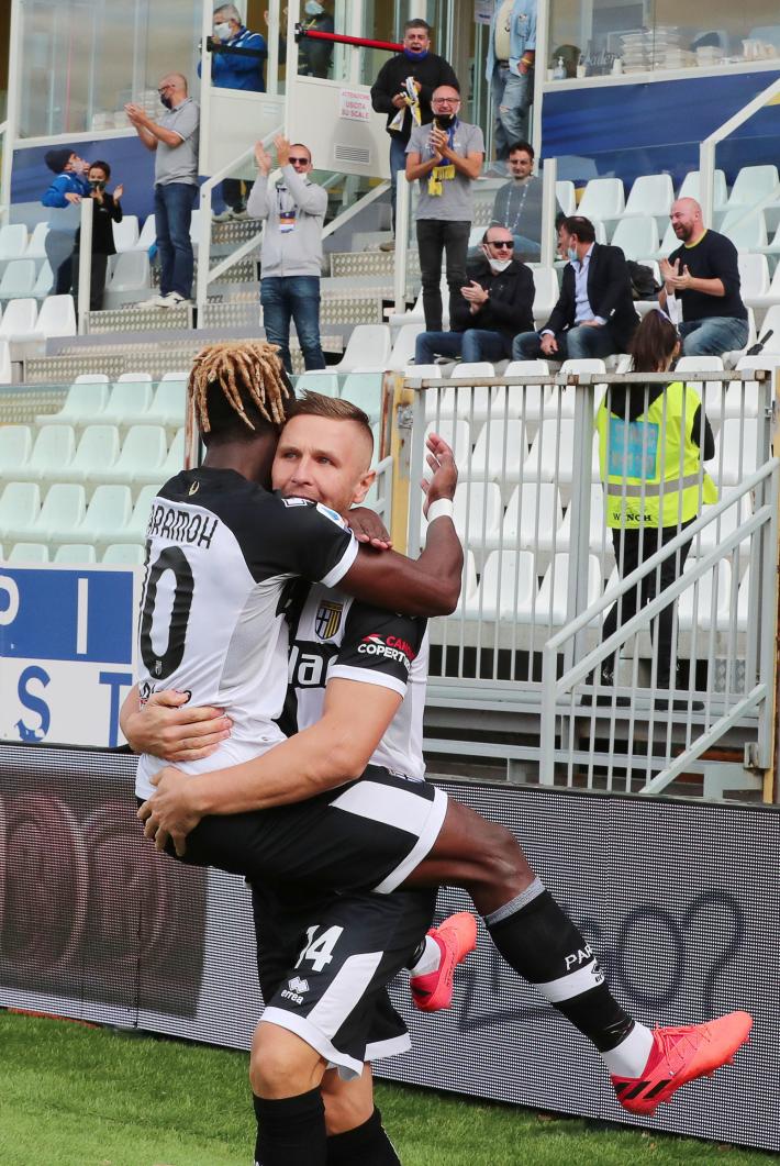 31' Altro brivido per i tifosi del Parma: sul cross rasoterra di Colley la palla arriva a Favilli che, tutto solo a porta vuota, liscia clomorosamente il tiro.