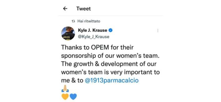 Il Managing Director del Parma Calcio 1913 Jaap Kalma esprime con queste parole la sua soddisfazione per l’accordo raggiunto: “Fin dal suo arrivo il presidente Kyle Krause ha manifestato un forte interesse per il calcio femminile, che si è poi concretizzato negli investimenti fatti questa estate per assicurare alla prima squadra un’allenatrice di prima fascia come Ilenia Nicoli, che tra l’altro per la prima volta nella storia del Parma è donna, e calciatrici che possano aiutarci a cominciare un percorso di ascesa. E’ bello sapere che siamo affiancati in questo progetto da OPEM, una importante azienda del territorio che si è distinta a livello internazionale, guidata da una top manager come Ombretta Sarassi. OPEM ha contribuito alla rinascita del Parma Calcio: il legame è solido grazie alla condivisione di valori ed obiettivi comuni, siamo dunque felici che il suo prestigioso brand appaia sulle casacche della Prima Squadra Femminile del Parma che per la prima volta avranno con OPEM un main sponsor dedicato”.
