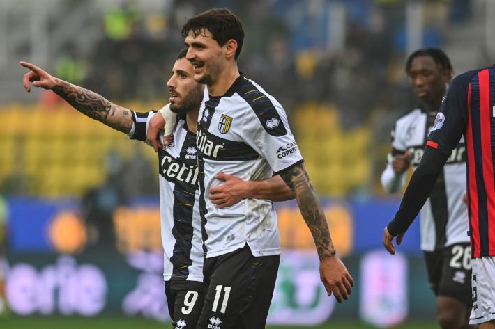 In realtà il Parma sembra schierato con una difesa a tre (Delprato, Danilo, Cobbault) e con Mihaila che fa il terzino destro a tutta fascia mentre Coulibaly si occupa della fascia sinistra. In attacco quindi c'è la coppia Tutino-Inglese