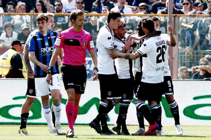 Il Parma battuto in casa vede diminuire a 8 i punti di vantaggio sulla terz'ultima (l'Empoli) vista la vittoria del Bologna sul Sassuolo (2-1). Al Tardini finisce 1-3 con l'Atalanta che dilaga nel finale. Quando esce Gervinho al 60' per un problema a una coscia il Parma arretra l'asse e viene subito punito da un'Atalanta in forma straordinaria. Nel finale Zapata (doppietta) termina la rimonta.