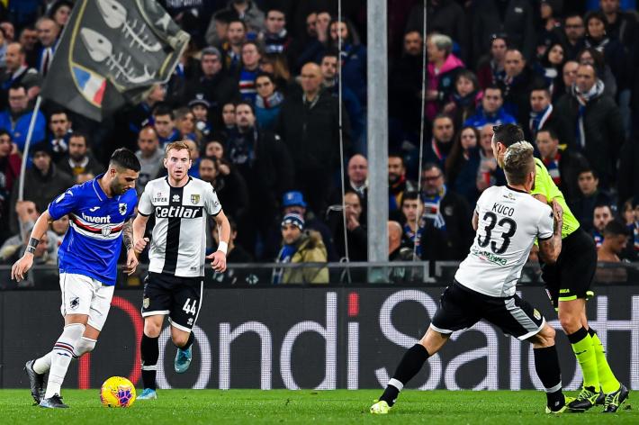 Il Parma torna da Genova con tre punti pesanti e allunga a quota 21 in classifica. Non basta la reazione d’orgoglio alla Sampdoria di Claudio Ranieri per evitare la sconfitta casalinga per 1-0 contro l'undici di D’Aversa in vantaggio al Ferraris dopo appena 21'. E’ Kucka a farsi trovare pronto in area sugli sviluppi di un calcio d’angolo con un colpo di testa vincente che non lascia scampo ad Audero. La reazione della Sampdoria è affidata all’estro di Gabbiadini e Ramirez, autori di un assist prima per Murru impreciso alla conclusione e poi per Vieira il cui tiro trova l’opposizione di Sepe. Al 64' la Sampdoria sfiora il pareggio: Gabbiadini conquista un calcio di punizione e dai trenta metri lascia partire un mancino che si stampa sulla traversa. Al 76' la squadra di Ranieri ha la chance più grande per l’1-1: Dermaku stende Quagliarella in area e per Abisso è rigore. Dagli undici metri il numero 27 viene ipnotizzato da Sepe ma mette in rete su assist di Jankto, il cui ingresso anticipato in area inficia la regolarità del gol annullato dal var. Sepe si ripete poco dopo con una paratona a tu per tu con Colley. Grazie a questa vittoria, i crociati raggiungono il Napoli a 21 punti, mentre la Samp rimane al quart'ultimo posto con 12.