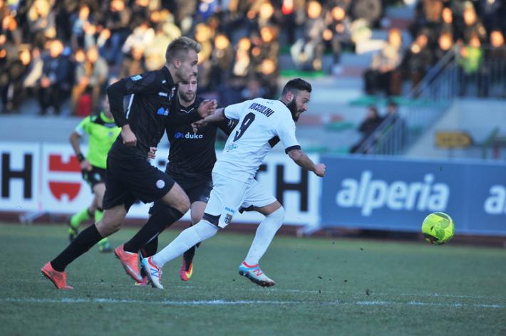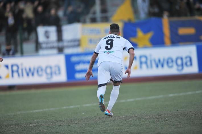 42': Nocciolini, liberato da Calaiò si trova a tu per tu con il portiere avversario. A botta sicura, Marcone respinge. La palla finisce ancora a Nocciolini che di testa sbaglia il più facile dei tap-in.