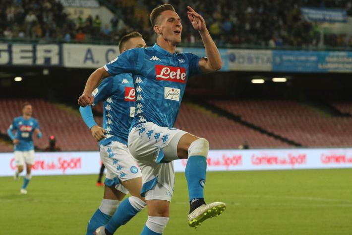 47' Gran gol di Milik: lanciato al limite del fuorigioco, al limite dell'area di interno collo mette alle spalle di Sepe