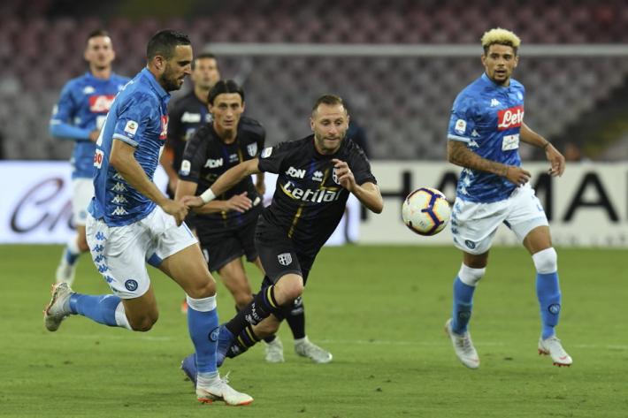 62' Si vede (un po') il Parma, da 2' è nella metà campo del Napoli