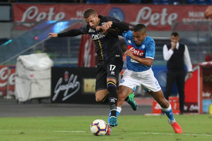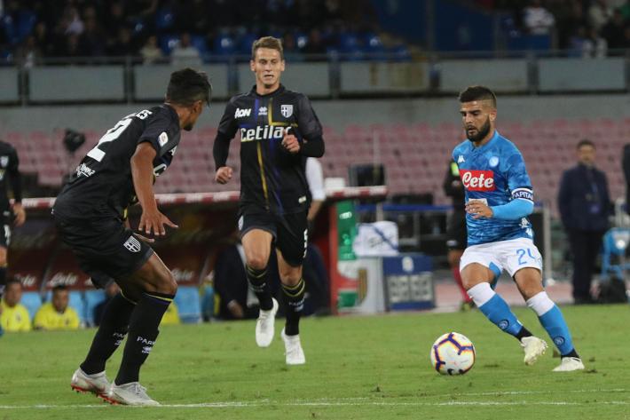 18' Non è facile per il Parma ripartire: il pressing alto del Napoli ferma fin da subito le offensive crociate
