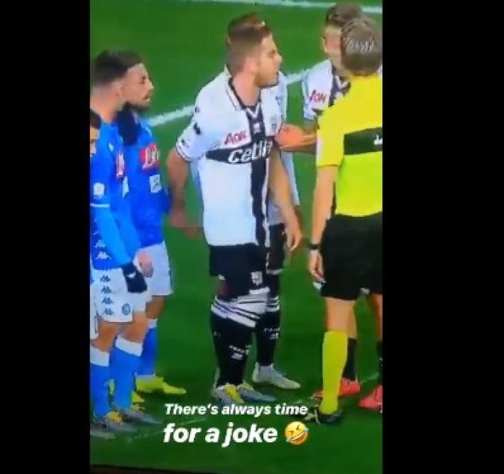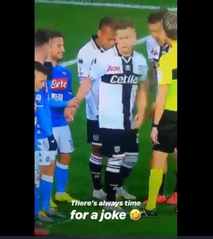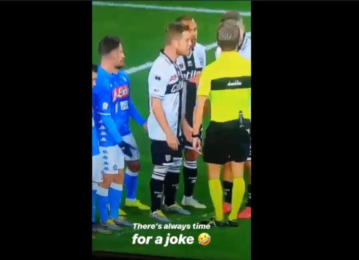 Scherzetto di Mertens a Gagliolo, durante Parma-Napoli. I calciatori stavano formando la barriera quando a un certo punto Martens ha toccato il "lato B" di Gagliolo. Un piccolo scherzo, "documentato" dal calciatore del Napoli con un video sul suo profilo Instagram. "There's always time for a joke", "C'è sempre tempo per uno scherzo", ha commentato il calciatore sul social network.