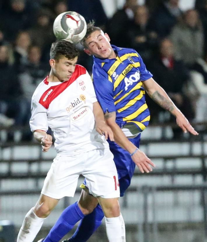 70' Maceratese protesta per un fallo in area: ma Saporetti anticipa in modo regolare l'avversario.