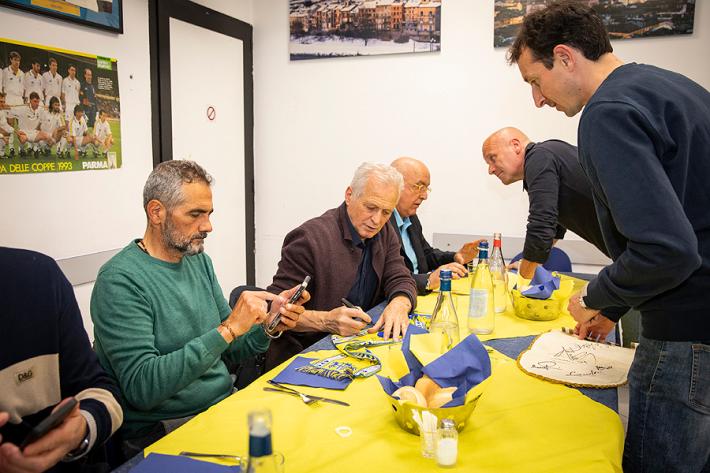 Una cena speciale per un giorno speciale. Dove il Parma di ieri ha idealmente abbracciato quello di oggi, rappresentato per l'occasione dal direttore operativo Stefano Perrone, dallo Slo Giuseppe Squarcia, dal responsabile Comunicazione Fabrizio Cometti e da quello della Comunicazione Giovanile e Femminile Gabriele Majo.
