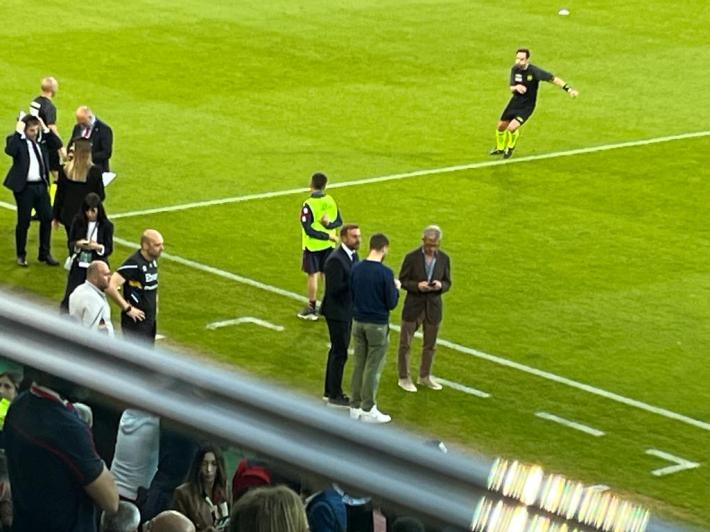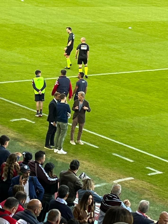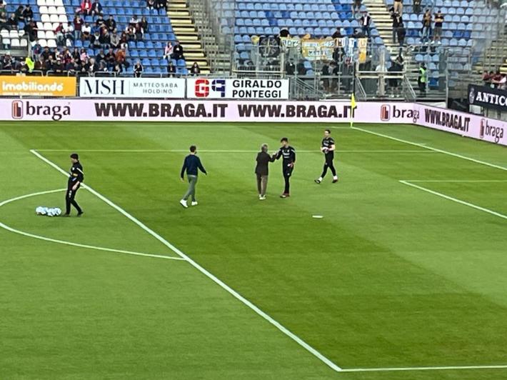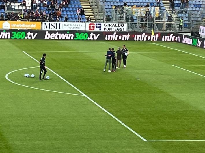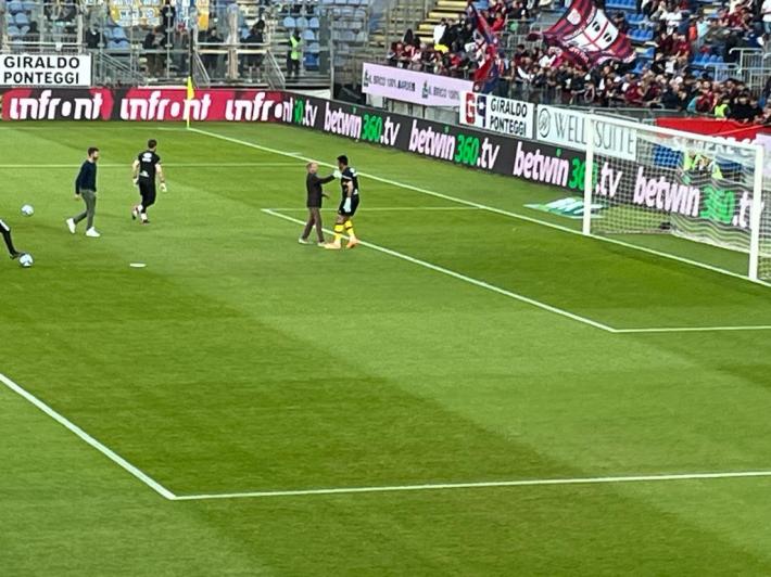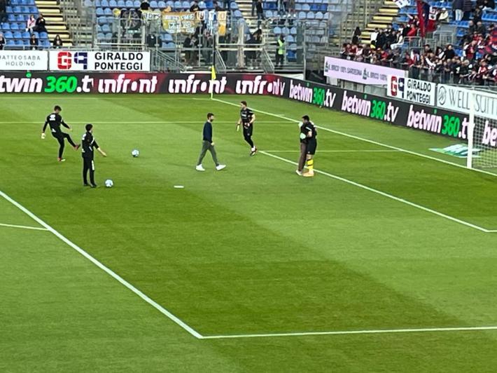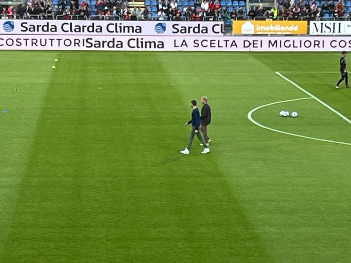 Krause, volato a Cagliari (leggi il post) nel prepartita, durante il riscaldamento, abbraccia i giocatori in campo con il figlio Oliver.