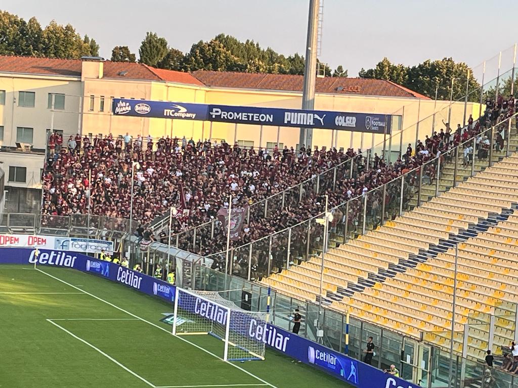 Il settore ospiti dello stadio parmigiano è strapieno e molto probabilmente sono sulle gradinate più dei 1.500 tifosi programmati.