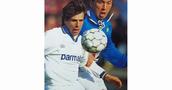 Serie A 1994-95: i gialloblù di Scala, Dino Baggio, Zola e Asprilla contro i blucerchiati di Eriksson, Zenga, Platt, Gullit e Mancini. Novanta minuti vissuti letteralmente sulle montagne russe: il Parma, avanti 2-0 nel primo tempo, si lascia riacciuffare nella ripresa. Rischia addirittura di capitolare. Zola fallisce dal dischetto. Poi, però…