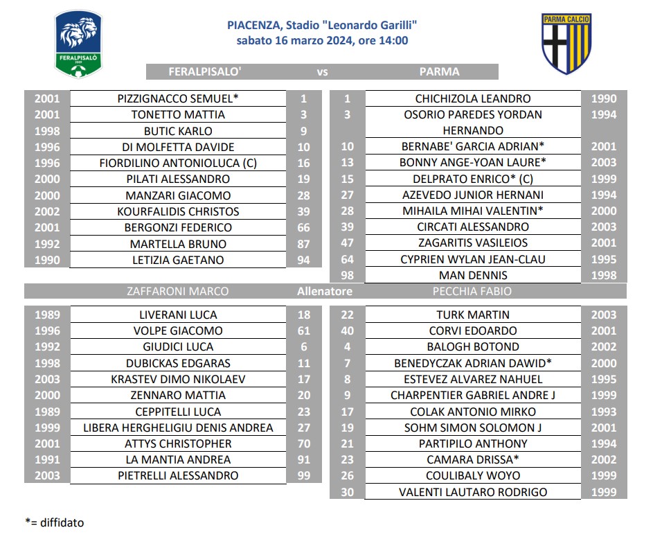 Come da abitudine non mancano le novità nel Parma anti FeralpiSalo. Partendo da Zagaritis esterno di difesa a sinistra e con Cyprien a centrocampo per Estevez in panchina. Come del resto Benedyczak.