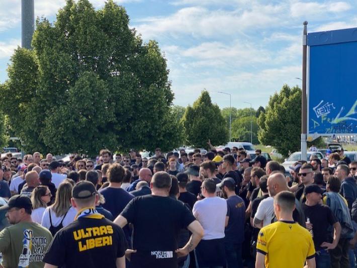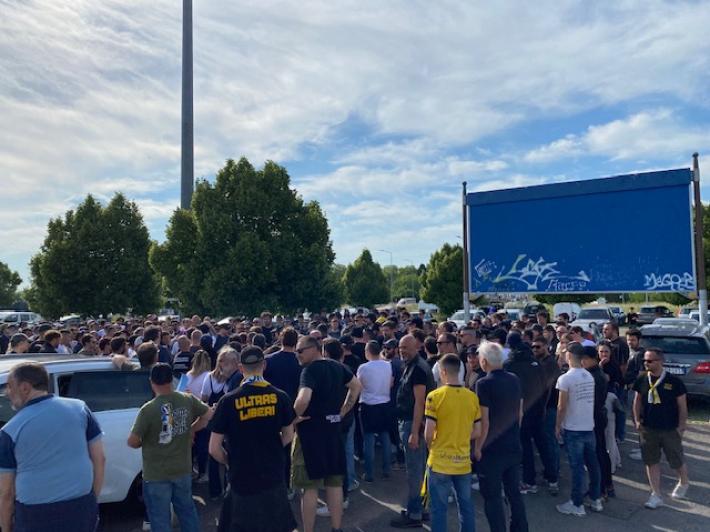 E' cominciato il viaggio dei Boys verso Reggio Emilia in attesa del derby tra Parma e Reggiana, ultima partita del campionato e con i crociati già promossi in A. Nonostante l'irrilevanza del risultato per la classifica finale, la partita è molto sentita e probabilmente sarà giocata allo spasimo tenendo conto della rivalità tra le tifoserie.