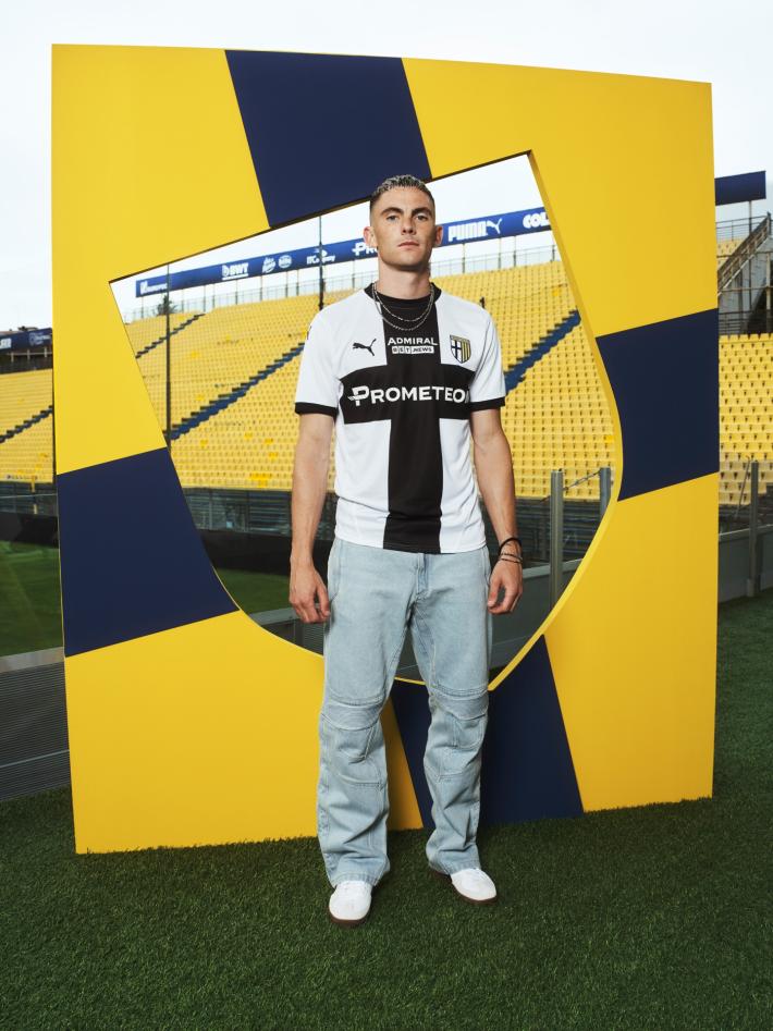 Presentazione via social della prima maglia (crociata) del Parma, che sarà utilizzata contro l’Anversa.