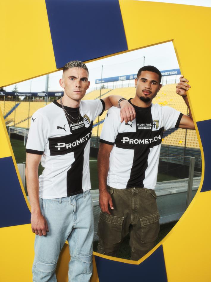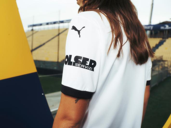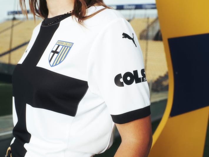 La nuova maglia Home nell’elegante colorway Puma White, ispirata all’inconfondibile Maja Crozäda dei primi Anni 80, disegnata nel 1913 dai calciatori Ugo Betti e Torquato Rossini, presenta l’iconica croce in Puma Black a contrasto, il colletto a girocollo e i profili delle maniche a contrasto in Puma Black. Impreziosita dal logo Tardini 100 che celebra lo storico legame fra la squadra e il proprio stadio nell’anno del Centenario.