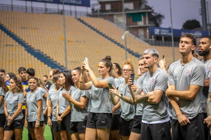 Grande festa allo stadio Tardini per la terza edizione di "Andiamo al Parma" che ha radunato migliaia di tifosi. Il momento clou dell'evento, caratterizzato da molte attività ludiche, è stata la presentazione della prima squadra maschile e femminile, del Parma Special e del team Esports, preceduta dalla sfilata di tutte le giovanili.
