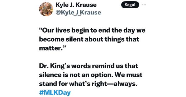 Oggi la risposta "americana" con una frase di Martin Luther King proprio nel Martin Luther King Day (il terzo lunedì di gennaio); l'attivista politico nacque 15 gennaio 1929.