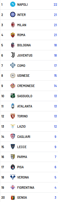 Il Milan batte la Roma 1-0 con un gol di Pavlovic al 39': Leao in progressione trova Pavlovic che con il mancino insacca alle spalle di Svilar. All'82' Maignan paga un rigore a Dybala: una punizione di Pellegrini trova la barriera, ma l'arbitro indica il dischetto per un fallo di mano di Fofana, sul dischetto Dybala che incrocia, ma Maignan intuisce e con un tuffo decisivo para il tiro alla sua sinistra. Milan secondo in classifica con Inter e Roma