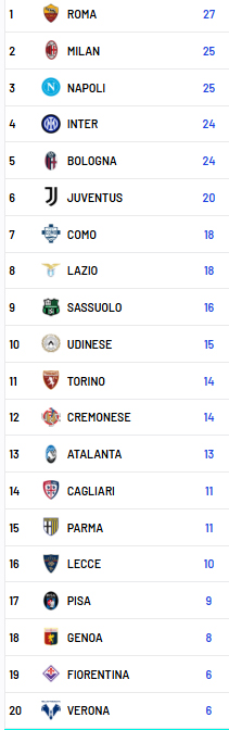 SERIE A - 12^ GIORNATA