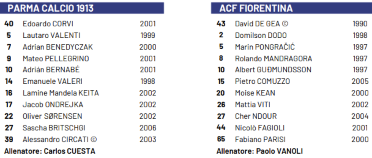 Sandro Piovani presenta le formazioni di Parma-Fiorentina. Per Cuesta un probabile 4-3-2-1 con Circati, Ondejka là davanti Pellegrino. Parma colpito da influenza e l'assenza di Estevez è orientata verso questa motivazione.