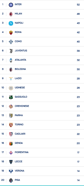 SERIE A - 22^ GIORNATA