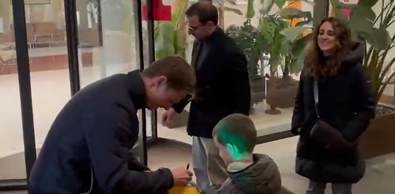 Accolto a Parma anche Hans Nicolussi Caviglia, che subito ha concesso un autografo a un piccolo tifoso (guarda il video)