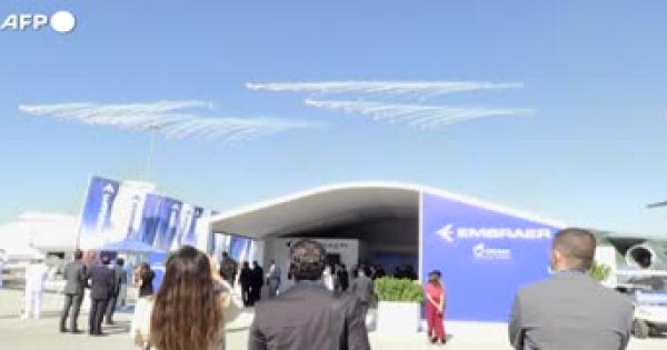 L'esibizione aerea nei cieli della nota citta' degli Emirati Arabi