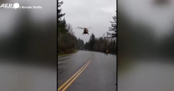 Un elicottero salva un gruppo di automobilisti bloccati sulla strada tra Hope e Agassiz
