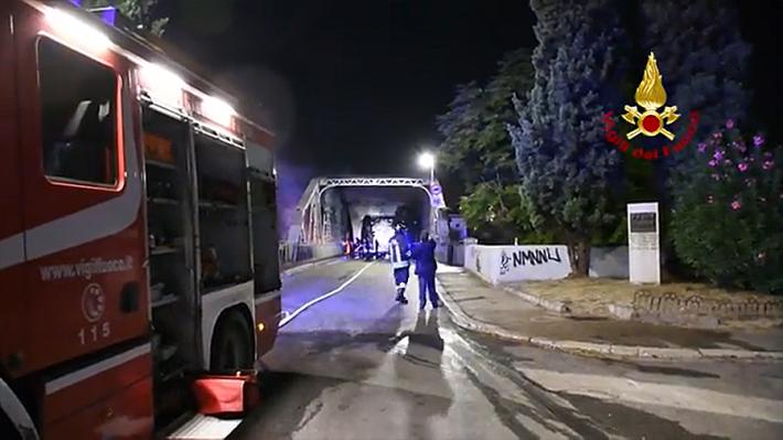 Un vasto rogo ha interessato il ponte dell'Industria - meglio conosciuto come Ponte di ferro - nel quartiere Ostiense a Roma, uno dei più frequentati dalla movida. I vigili del fuoco sono riusciti a domare le fiamme e al momento non sembrano essere coinvolte persone. Le fiamme, che poterebbero essere partite dalle baracche sotto il ponte, hanno coinvolto anche una condotta del gas. Alcune parti esterne sono crollate nel Tevere anche se la struttura comunque è restata in piedi.