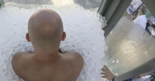 (ANSA) - ROMA, 06 SET - Immerso seduto in una vasca riempita di cubetti di ghiaccio che gli arrivavano fino al collo e nudo se non per un costume da nuoto a slip: è rimasto in questa posizione immobile per ben due ore e mezzo l'austriaco Josef Koeberl, che ha battuto di quasi mezz'ora il precedente primato da lui stesso stabilito lo scorso anno. L'evento si è tenuto, come l'anno scorso, nella cittadina austriaca di Melk, dove una piccola folla di fan si è radunata per assistere alla prestazione dell'impassibile Loeberl. Più che evitare il congelamento e l'ipotermia, lo sforzo maggiore sopportato dall'uomo è stato sopportare il dolore lancinante che invade l'intero corpo a diretto contatto con il ghiaccio. "Combatto il dolore visualizzando e portando la mente su emozioni positive. Così riesco ad attenuare quest'ondata di dolore", ha detto Koeberl cittato dal Guardian. "Mi sono sentito benissimo", ha aggiunto il performer austriaco, quando la pelle nuda semicongelata è stata di nuovo a contatto con il sole. (ANSA).