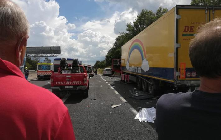 L’incidente è avvenuto in direzione sud l’altezza di Badia al Pino nel comune di Civitella in Valdichiana (Arezzo) intorno alle 14. L’autostrada è stata chiusa al traffico da Arezzo a Monte San Savino in direzione Sud e si sono formate code anche all’uscite obbligatorie istituite. Ora l'autostrada è tornata percorribile in entrambe le direzioni.