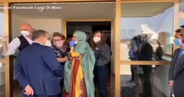 Silvia Romano è scesa dalla scaletta dell’aereo, indossando una veste islamica verde e una mascherina anti-coronavirus.