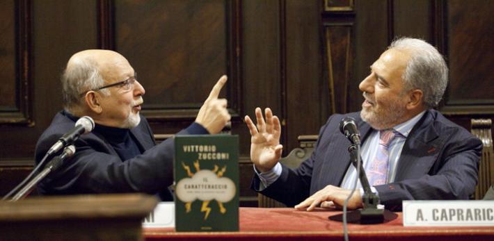 Qui sotto, a Parma in un incontro in Università con Antonio Caprarica.
