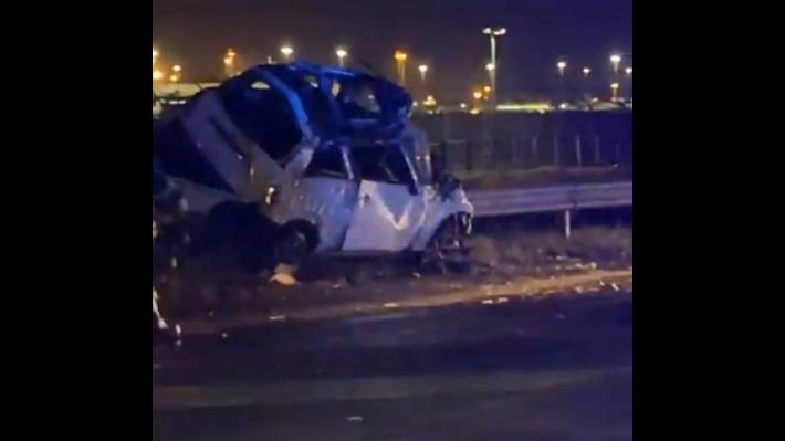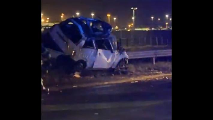 Le drammatiche immagini di ciò che resta della Smart travolta dalla tromba d'aria a Fiumicino. Il vento fortissimo ha provocato un incidente, in cui è morta una giovane donna.