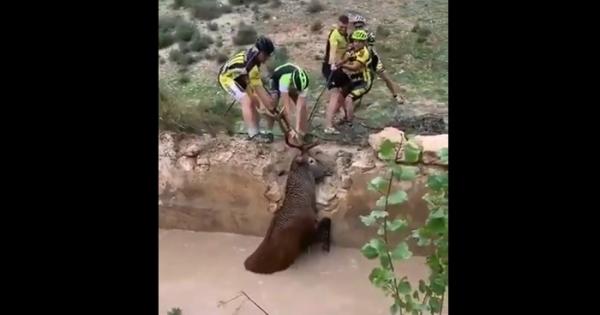 Una squadra di ciclisti spagnoli ha salvato un cervo rimasto intrappolato vicino a Granada in un caseggiato abbandonato.