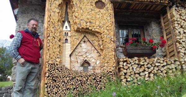 E’ stato svelato il nome dell’artista del bassorilievo in legno - la riproduzione dettagliata di una chiesa - che sta spopolando sui social, divenendo virale. L’autore è Sandro Savio, di Vallada Agordina, sulle Dolomiti Bellunesi, il quale da qualche anno ama realizzare cataste di legna artistiche che riscuotono la curiosità di molti, turisti compresi. L’opera ripresa in molte foto pubblicate poi sui social, è la riproduzione della chiesa di San Simon, ed è visibile lungo la strada comunale, sulla parete del piccolo edificio del «forn», a Sachet di Vallada. Colpisce la cura dei particolari e il lavoro minuzioso che ha portato Savio ad accostare legni di diversa tipologia: abete, frassino, acero, larice, in un gioco di colori e un mosaico di contrasti. Il bassorilievo di legno ha destato l’attenzione di tanti, e le immagini postate in rete hanno contribuito alla sua diffusione, e al 'misterò sull'autore, nel passaparola mediatico. Chi sosteneva che l’opera fosse di un architetto trentino, chi la collocava in una non precisata località dell’Austria salisburghese. L’autore è invece il bellunese Sandro Savio, 61 anni, una passione nata dall’esigenza primaria di procurare e tagliare la legna per l’inverno. I primi lavori che hanno trovato forma su una facciata della sua casa di Sachet sono state le riproduzioni delle carte da gioco, le stelle alpine, la chiesa di San Simon, le «danbre», gli zoccoli in legno borchiati e il «pavàre», i semi di papavero. Come nascono le sue creazioni ? Con il 'manarin', la macchina spaccalegna, la sega circolare e tanta pazienza. In primavera Sandro taglia la legna, generalmente abete, per fare la base della pila. I pezzi, regolari per lunghezza e dimensione, vengono collocati gli uni sugli altri. Nel frattempo ha già predisposto un disegno e un modello del bassorilievo, che prende forma accostando i legni adatti e tenendo conto dei cambiamenti cromatici assunti dalla fibra con passare del tempo. Quest’anno, sulla catasta di casa, ha rappresentato il lupo, animale ha fatto molto parlare di sè in provincia negli ultimi tempi. Il lavoro è stato completato dalla raffigurazione di un gufo, della luna e di un gatto.