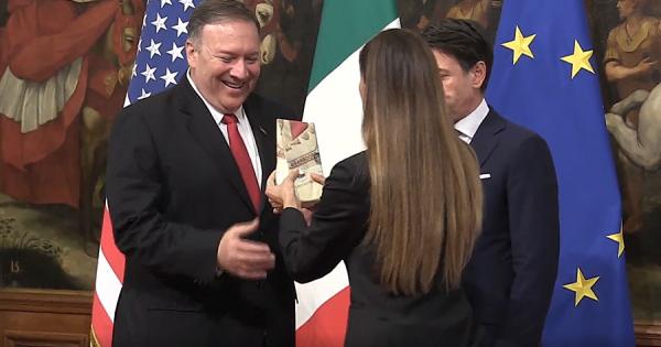 Irruzione delle "Iene" a Palazzo Chigi, nella sala dei Galeoni, proprio mentre il premier Giuseppe Conte riceveva il segretario di Stato Usa Mike Pompeo. La cronista del programma di Italia Uno, Alice Martinelli, ha infatti tentato di consegnare una forma di parmigiano al segretario di Stato americano come simbolica protesta per il tema dei possibili dazi Usa nei confronti dei prodotti europei e italiani. Ma la cronista è stata stoppata dal capo del governo. «Lo faccia fare a me, il presidente del Consiglio, non è così che si difende l’Italia», avrebbe detto Conte invitando la cronista ad allontanarsi.