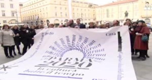 I primi festeggiamenti davanti al municipio, dopo l'annuncio a Roma